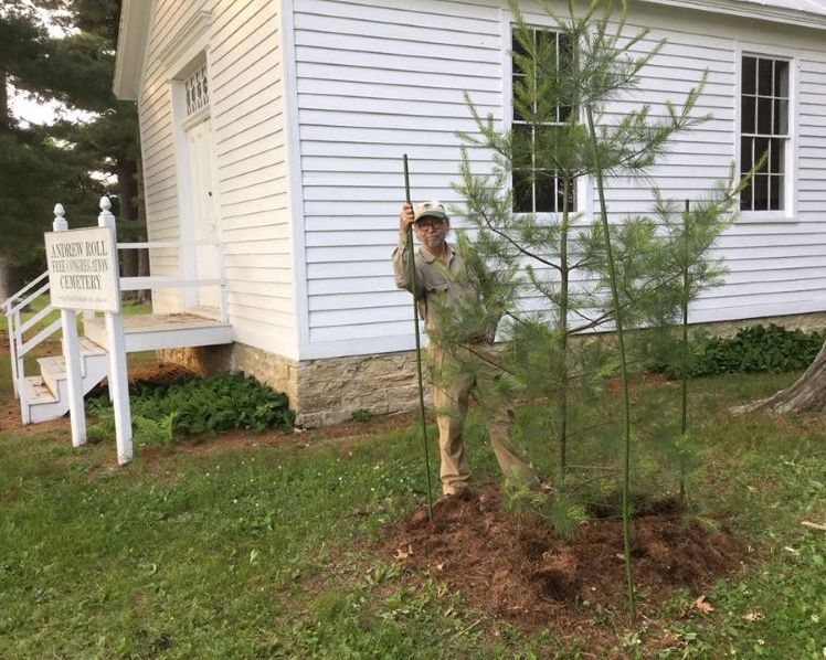 Planting new white pines at the Andrew Roll Cemetery